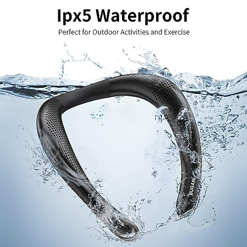 With IPX5 waterproofing and a long-lasting 1000mAh battery providing up to 24 hours of playtime, this speaker is perfect for outdoor adventures. The built-in noise-canceling microphone ensures clear hands-free calls. Lightweight and bendable, it easily fits in your bag, making it perfect for music, calls, or TV. Plus, with Bluetooth 5.0 technology, enjoy a stable connection up to 33ft. Package includes Bugani M115 Wireless Neck Speaker, charging cable, and quick user guide.