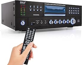 Power: Boasting 3000W peak power, it ensures your speakers deliver clear, high-fidelity audio whether you’re watching movies or singing your favorite tunes. Inputs: Versatile with 7 input options including USB, iPod, MP3, FM tuner, AUX, front-loading CD/DVD player, and 2 microphone inputs with echo effect for karaoke. Bluetooth: Enjoy seamless music streaming with built-in Bluetooth compatibility, pairing effortlessly with modern devices like smartphones, tablets, and laptops. Controls: Easy-to-use rotary knobs for EQ and master volume adjustments, complemented by blue LED illuminated buttons and knobs, ensure high visibility. Display and Remote: The built-in digital fluorescent display meter clearly shows functions and inputs in use, complemented by a remote control for convenient distant adjustments. Compatibility: Works with a variety of devices, providing flexibility in your audio setup and ensuring you can play your favorite media from almost any source.